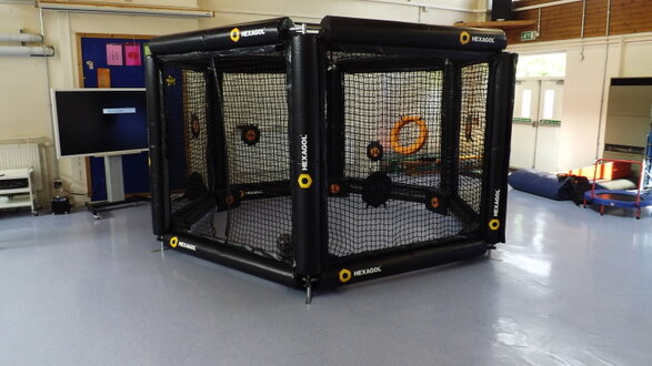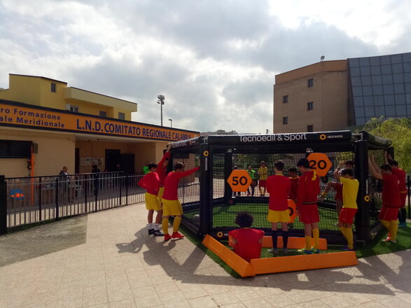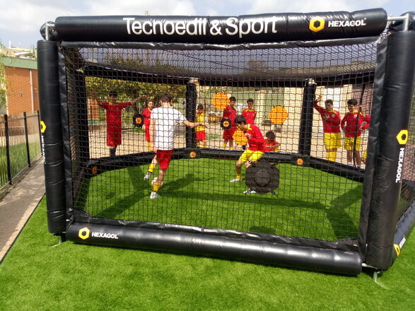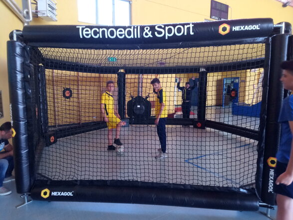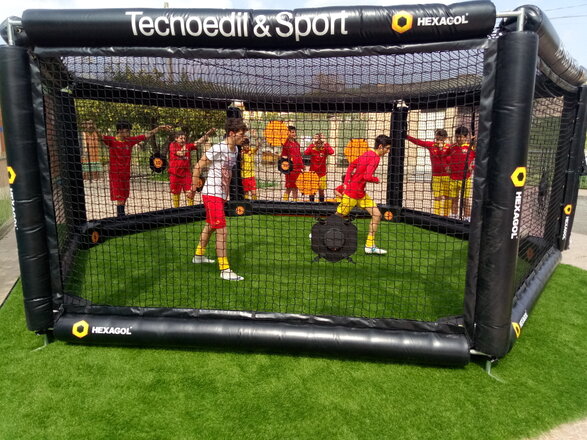 HEXAGOL è un sistema composito e chiuso dove la palla non ha possibilità di uscita, ma rimane a costante disposizione degli atleti.