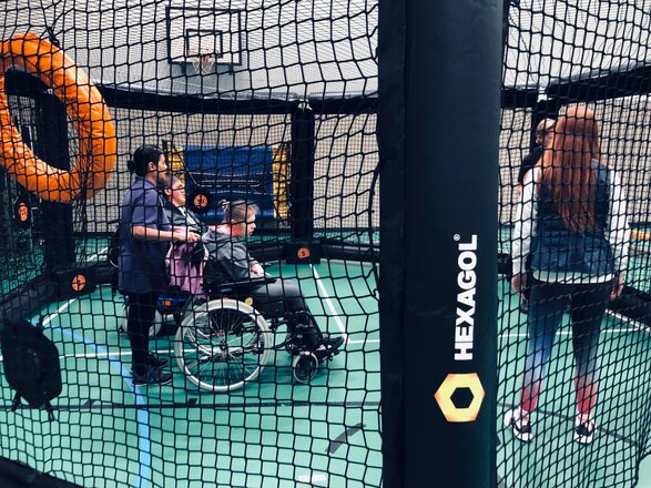HEXAGOL si presta a garantire in sicurezza un programma adattabile, decisamente propedeutico per l’allenamento e l’intrattenimento dei portatori di disabilità fisica, psicomentale e sensoriale (suoni – luci – tatto – movimento – attenzione - condivisione).