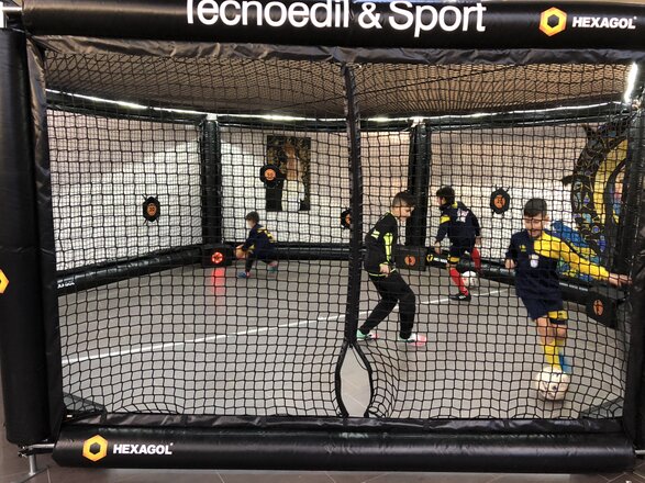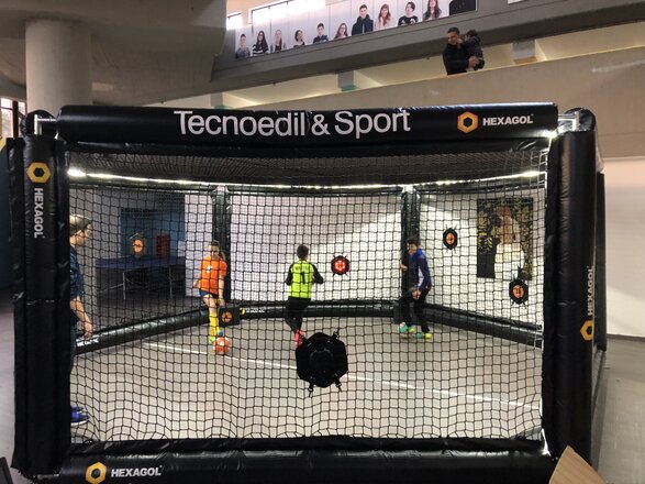 HEXAGOL è un sistema composito e chiuso dove la palla non ha possibilità di uscita, ma rimane a costante disposizione degli atleti.